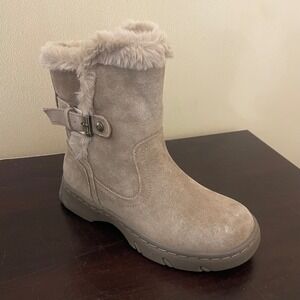 Easy Spirit Graye Womens Ankle Boots Medium Brown Suede Faux Fur Trim Size 5 M