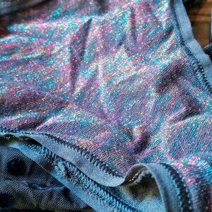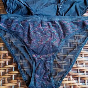 4. These black Victoria's Secret sparkly bikini panties feature a mesh design with a glittery Rainbow Multi Shimmer finish and a branded waistband, Sheer sexy back. Reads “VICTORIA’S SECRET” all around the waistband-I cut tag off at one point...not sure why.