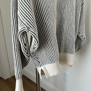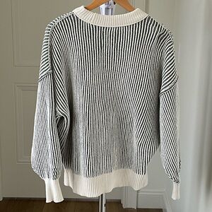 Aerie Green Cream Ribbed Knit Oversized Sweater Drop Shoulder