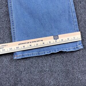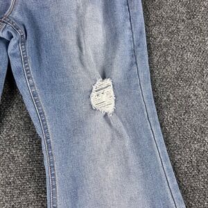True Craft Womens High Rise Flare Jeans XL Blue Distressed Pull On Elastic Waist