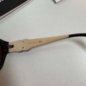 Please note the condition of the ARMS of the sunglasses - the leather "opened" so it was but to not flap around since it was no longer "glued" to the arms. Overall great shape - light wear on the lens. The CC chain emblem in great shape