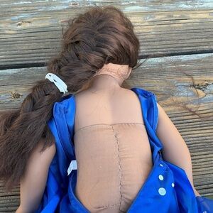 This elegant doll features a stunning blue dress with charming floral details, perfect for imaginative play. In good prelove condition a bit dirty but I will clean as much as I can Dress not include
