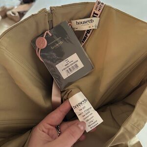 NEW House of CB Elissa Stone Tan Strapless Corset Mini Dress M D-E Plus Cup