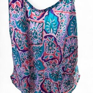 Women's Large - Abstract Floral Cami Tank Top - Pink Teal Purple