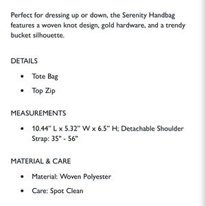 Evereve woven handbag. Detachable and adjustable strap. Comes with nylon insert or small bag. Brand new without tags. Retail $120. Ever so cute.