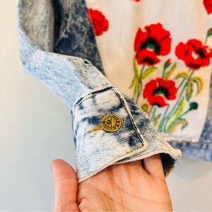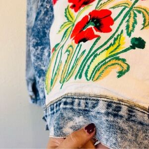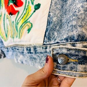 Vintage Guess Acid Washed Denim Jacket Upcycled Custom Embroidered Beaded Unique