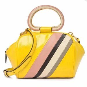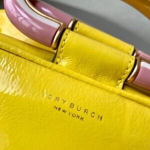 NEW! NWT! Tory Burch Half Moon Strip Mini Satchel Boston -Yellow Leather Women