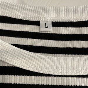 Add a touch of elegance to your wardrobe with this chic black and white striped long sleeve top. Perfect for casual outings or a day at the office.