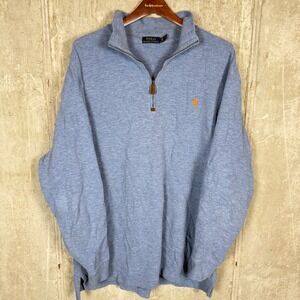 Polo Ralph Lauren Mens 1XB Big & Tall Quarter Zip Pullover Blue Heather Sweater