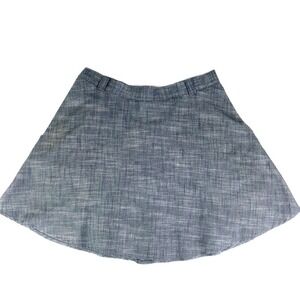 Joe B button-front mini skirt offers a breezy, lightweight feel with its 100% cotton construction and textured chambray-style weave. This versatile piece features a classic A-line silhouette and functional side pockets.