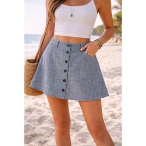 Button Front Mini Skirt Womens 100% Cotton Pockets Retro Beachy Coastal Y2k