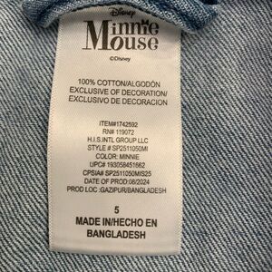 Disney Minnie Mouse Girl’s Denim Jean Jacket Size 5