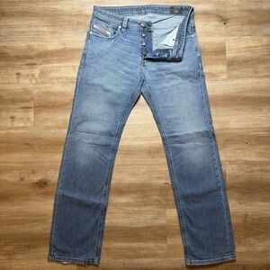 Diesel Zathan Jeans Men 34x32 Blue Regular Bootcut Stretch Light Contrast R831D