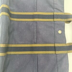Sophisticated Hermes bag in navy and olive. Ideal for everyday use. Stylish and functional design. She has a few spots. Please carefully view pictures. She has significant corner wear, but it does not compromise the bag’s usefulness. No holes. Great as your first Hermes piece. The snaps snap. No smells. She has plenty of life left. Price reflects condition.