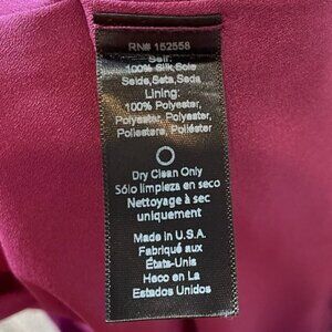 Dress is 100% silk. Lining is 100% Polyester. Dry Clean.