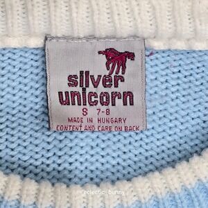 Silver Unicorn Vintage Kids Blue Snowflake Knit Sweater Made in Hungary Size 7-8