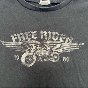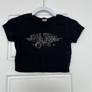 Garage chic black crop top with edgy graphic. Ideal for casual wear. Great condition in size s
