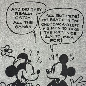 Uniqlo X Disney Mickey Mouse Minnie Mouse Conversation gray T-Shirt in Size Medium. This shirt features a vintage-style comic strip graphic of Mickey and Minnie. Shirt is preloved and in good condition.