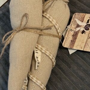The Rae Dunn Beige Fabric Carrots are a set of 3 decorative items perfect for adding a touch of spring to your home decor. Made of durable burlap material and featuring a neutral beige color, these carrots are ideal for any room in your home. With their stylish design and simple aesthetic, they are a versatile addition to your space, suitable for adults looking to bring a touch of nature and charm into their living environment. Perfect for Easter or any spring occasion, these decorative carrots from Rae Dunn are a must-have for your home.