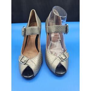 Corso Como Peep Toe Mary Jane Leather Pumps Heels Metallic Snakeskin Size 8
