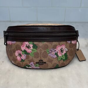 Coach Purse Leather Floral Bethany Belt Bag Signature Canvas Blossom Print NWOT