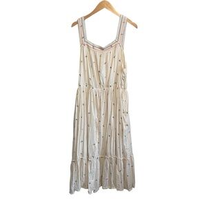 Old Navy Sleeveless Waist-Defined Embroidered Clip-Dot Midi Dress Cream Floral