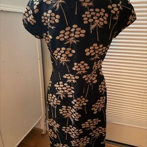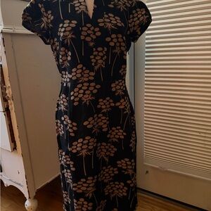 Boden Black and Tan Floral Midi Dress
