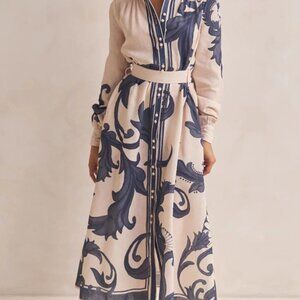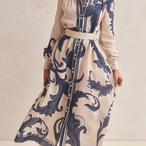 Printed Button Down Belted Shirt Dress