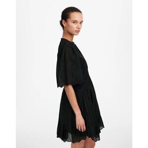 Madewell Women's Cotton Eyelet Flutter Sleeve Mini Dress NU556 Jet Black Size 12 NWT/FLAWED