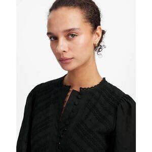 Madewell Cotton Eyelet Flutter Sleeve Mini Dress NU556 Black Size 12 NWT/FLAWED