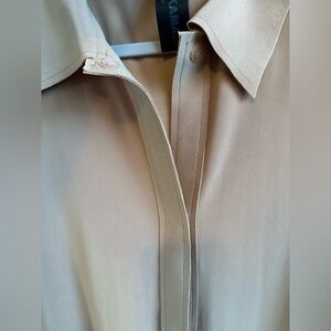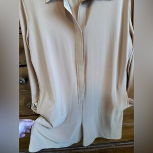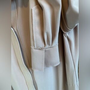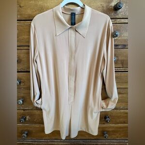 Long Sleeve with Velcro closure up to collared v-neck. Pockets at hip.