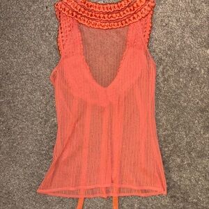 Coral tank top featuring intricate braided accents. Stylish and bold design. Ideal for a chic look.
