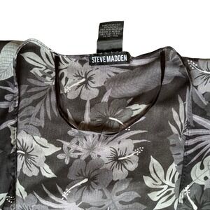 Steve Madden open-front kimono wrap in a lightweight, sheer chiffon fabric. This versatile layering piece features an all-over tropical hibiscus and palm leaf print in a monochromatic black and grey color palette. Designed with a relaxed, oversized draped fit and draped fit serves as an ideal beach cover-up or a stylish addition to a casual outfit. * Flaw : Fabric is frayed a little near the tag, see last pic.*