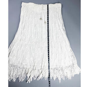 * Vintage 90's white crochet knit skirt features an intricate openwork pattern and a scalloped hemline
