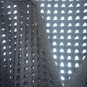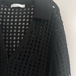 This chunky pointelle crochet-knit cardigan has a classic fit with a button-up front, flared sleeves and a collared neckline. It's see-through so you can wear over cropped tanks or even your bathing suit while on vacation.