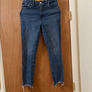 Good American good legs cigarette style GLSPL67T in Blue 842 raw hem ankle Jean