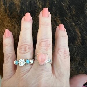 ❤️ Queen Pink Conch Heart Ring Sterling Silver Navajo Southwestern Style Sz 8.75