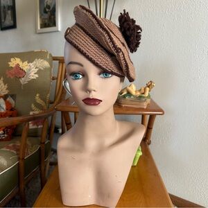 Vintage Hat Lot | Beret | Crochet Knit | Brown Beige | 60s | 40s | 30s