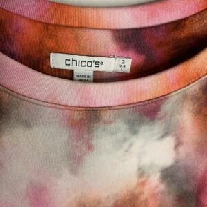 Chicos French Terry Tie-Dye Poof Sleeve Pockets Cotton Dress Shirt Sz 2 US L