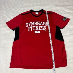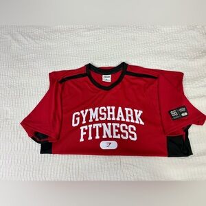 Vibrant red tee with bold black panels. Gymshark Fitness print on front. Perfect for active wear.