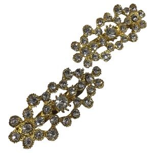 Openwork Twin Brooch Pair Gold Tone Clear Rhinestones Vintage Costume Fashion