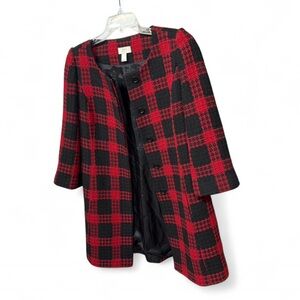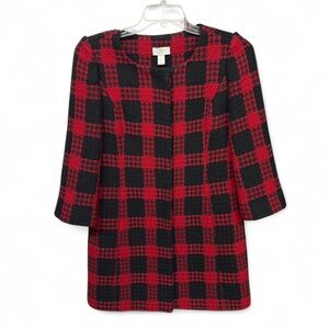 ANN TAYLOR LOFT Red Black Plaid Tweed Coat Jacket Wool Blend Size 6
