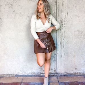 New! So adorable!! Brown faux leather snaps in front skater style skirt! So cute!!