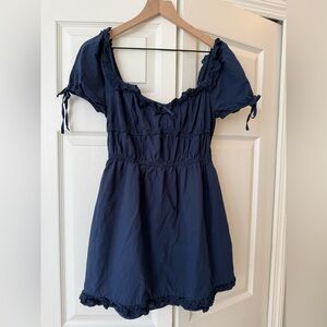 Beverly and Beck PAC SUN Ruby Ruffle Bow Navy Blue Mini Dress Size Medium nwot