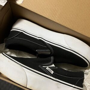 Vans Men's Black and White Slip-On Sneakers