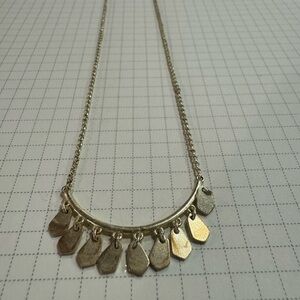 Swingy charms suspended from a slender, arced bar bring eye-catching movement and shine to this contemporary necklace.