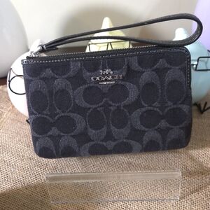 NWT Coach Corner Zip Black Denim Signature Wristlet