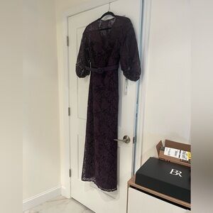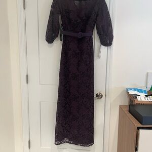 Kay Unger Deep Purple Lace Long Sleeve Dress