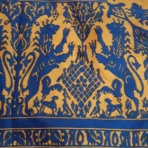 Giorgio di Sant' Angelo Vintage Tangerine and Navy Griffins and Birds Medieval Scarf" 27"Square.