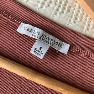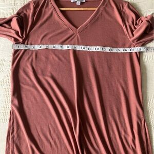 GREEN ENVELOPE Mauve Micro Ribbed V-Neck 3/4 Sleeve Top Size S